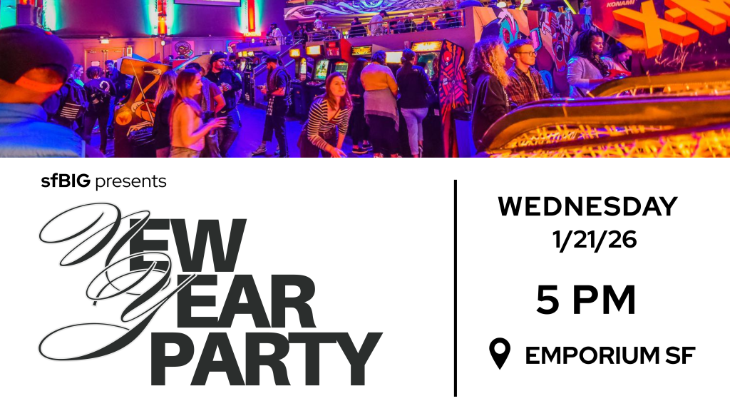 ✨ Sponsorship opportunities are available for a bar sponsor, food sponsor, and safe ride sponsor. Interested in putting your company front and center at sfBIG’s first event of 2026? Reach out to [email protected] to learn more.