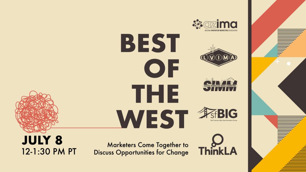 Digital marketing organizations of the West Coast including sfBIG, LVIMA, ThinkLA, AZIMA, and SIMM are coming together to host the largest (virtual) gathering of its kind! This Best Of The West event will be historical and we are very pleased to be playing a part in the action.